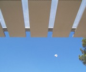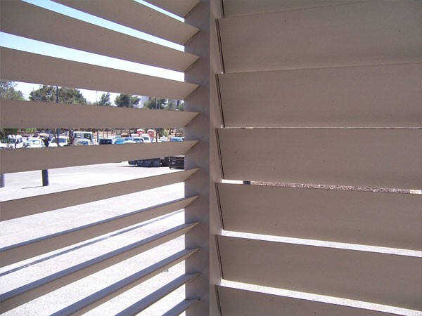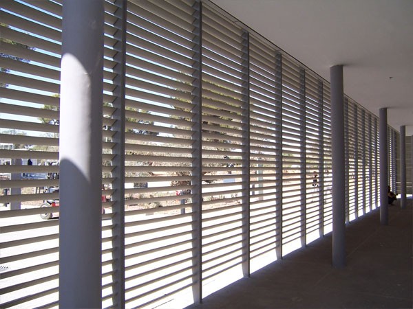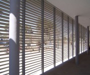 Employing a system of Terracotta clay Louvers, manufactured by Moeding in Marklkofen Germany, Carpenter has sought to soften and diffuse the intense Mediterranean sunshine while permitting views of the surrounding rocky terrain, pines, olives trees, and other vegetation. Moeding had produced Louver profiles of 2 different shapes including special metal fixing to the vertical mullions on which the profiles had been installed. On the north and south exposures, the stationary louvers are more open, having used Profile 1 shape, while those on the east and west merely allow the light to penetrate and reflect, having used Profile 2 shape. At night, the pavilions glow like lanterns from within on all sides. The terra-cotta louver system designed by James Carpenter and his crew headed by Architect Reid Freeman of James Carpenter Design Associates Inc. had been studied,