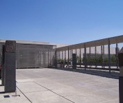JCDA also inserted an underground passageway leading from the entry to the hilltop exhibition area that permits visitors the choice of avoiding an open-air ascent via steps in the blazing heat. The museum visitors are lead to the passageway from entrance gate through metal structure pergola covered horizontally by impressive unique Longoton® Terracotta tiles made by Moeding which had been carefully studied and elaborated, to donate a peaceful pedestrian walk atmosphere under 7 meters length pre-assembled special grey tiles.